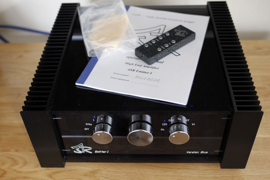 Selger ASR Emitter 1 basic 2008 mod.Dette er en integrert forsterker med seperat strømforsyning som til sammen veier 50kg.
