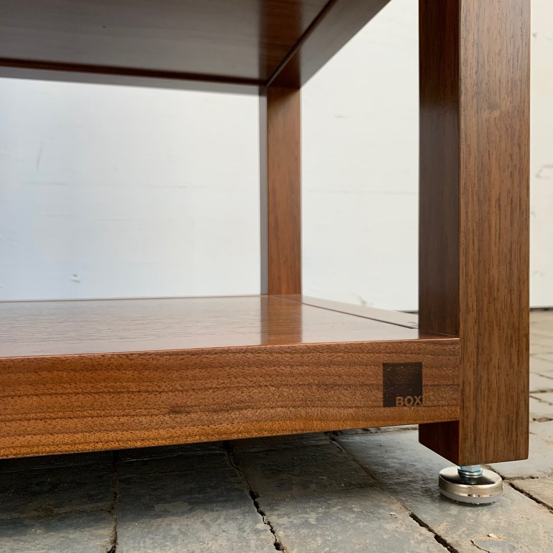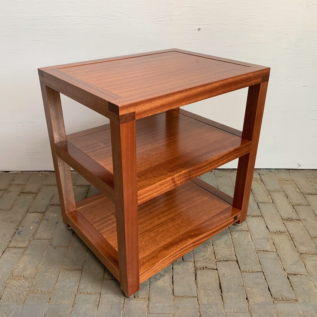 Ekte håndtverk hele veien, og et skikkelig flott møbel. Tåler vekten av alle forsterkere og platespillere jeg har sett så det bør ikke være noe problem.