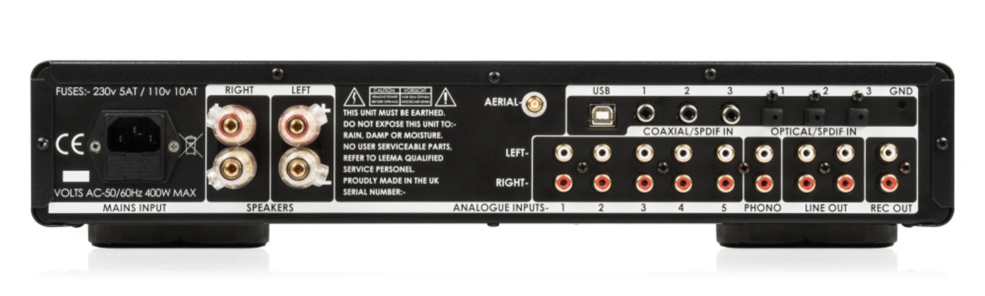 Inputs (analogue): 5x line level • Phono input: MM/MC (taken from Essentials phono stage) • Inputs (digital): 3x electrical S/PDIF; 3x optical S/PDIF; 1x USB Type-B