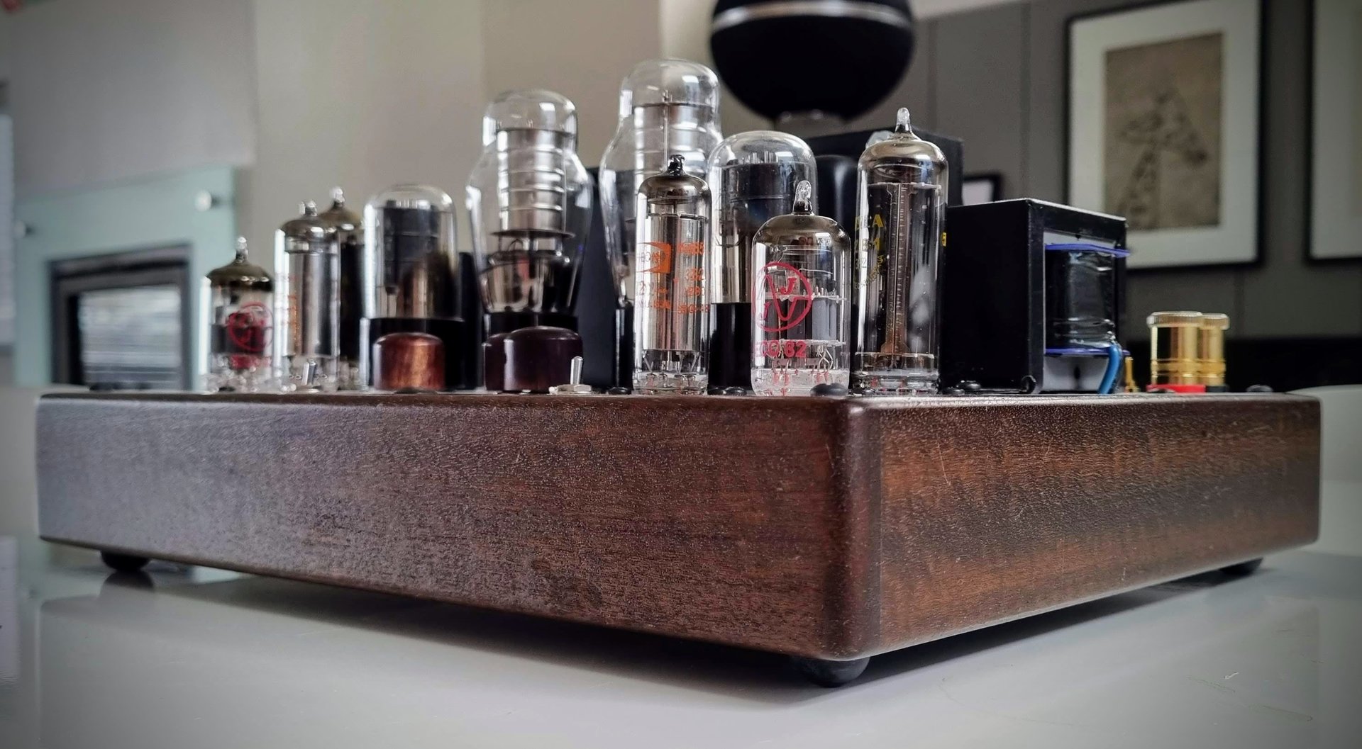 Liten og nett. Yter 2x4 watt i klasse A Single-ended Pentode. 2 stk ubalanserte innganger og 1 ubalansert utgang.