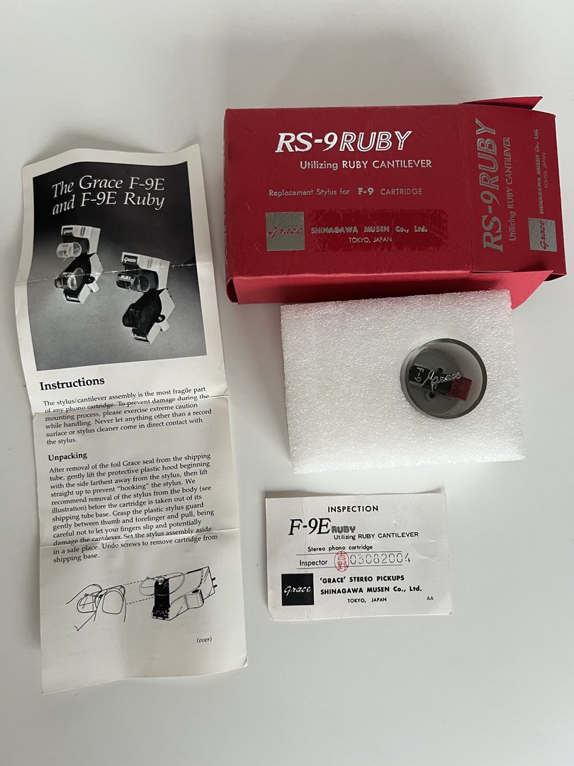 Grace F-9E Ruby selges. Etter over 15 år i skuffen legger jeg ut Grace’n for salg. Denne fulgte med en NOS Denon DP72L som hadde blitt pakket feil og fått bøyd armen. Det fulgte derfor med "ny" original replacement stylus til denne. Vanskelig å anslå eksakt timeantall, men jeg tipper rundt 50+...