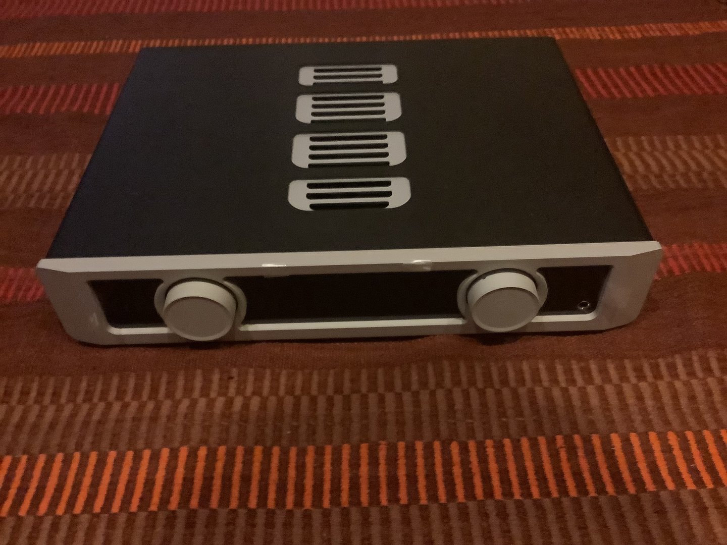 Integrert forsterker, strøken, pent brukt, 60 watt i 8 Ohm, kraft i massevis ved vanlig spilling i vanlig rom. Lyden er naturlig og behagelig, egentlig en liten perle av en integrert forsterker, ikke kresen på innspillinger. 5 linjeinnganger hvorav phono med RIAA, pre out og line out, ht bypass, hodetelefoninngang, fjernkontroll. Kan kjøre med ekstern pre. Gode omtaler på nett, les gjerne omtalen i Håkon Rognliens blogg. Nypris 53000. Jeg selger fordi jeg er på vei til et pre--effekt oppsett. Kan sendes, pakker godt. Fraktomkostning kommer i tillegg.
