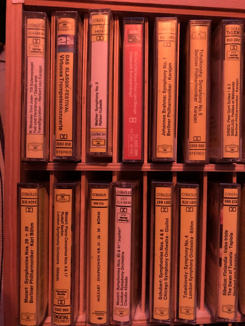En flott samling med 33 kasetter. Alle er lite brukt. Har vært i en samling hvor eier er kvalitetsbevisst gjeldende tolkninger og plateselskap. DG er det mest av. Les teksten på bildene for komponist, musikk og orkester med dirigent! Gi bud!