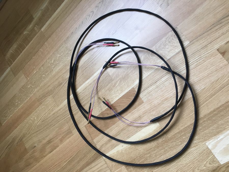 Pent behandlet par LFD Audio Spiroflex. Meget gode kabler selges pga overgang til bi-wire. Solide bananplugger i begge ender som sitter godt, men som ikke belaster kontaktene på forsterker eller høyttaler unødig.