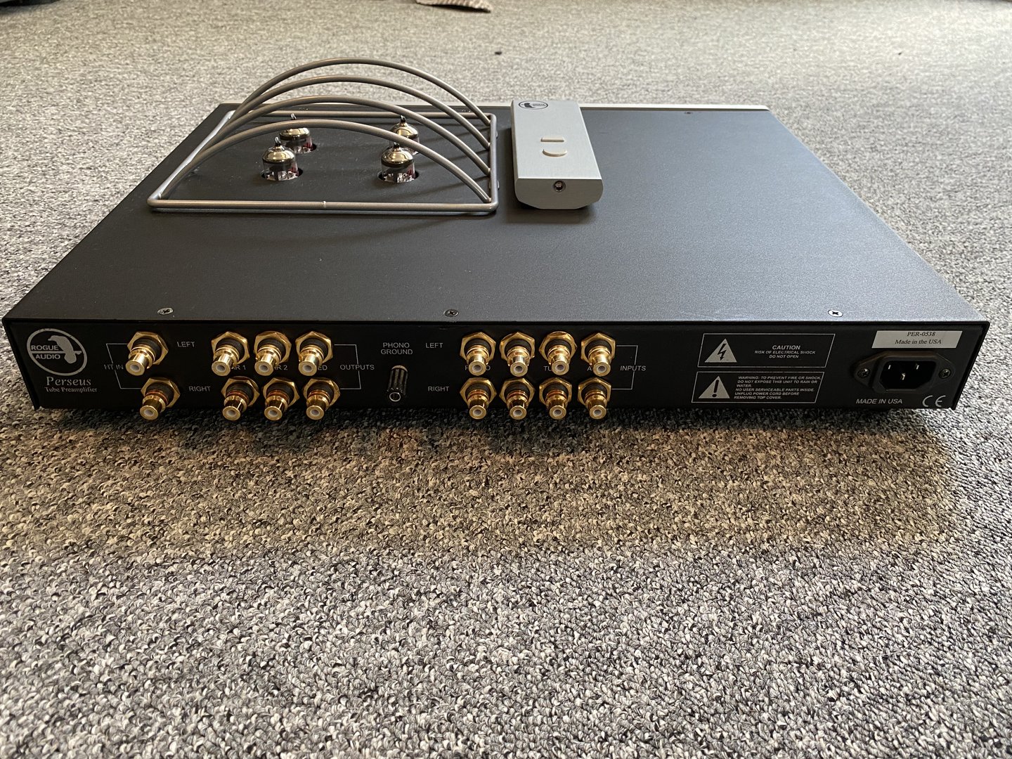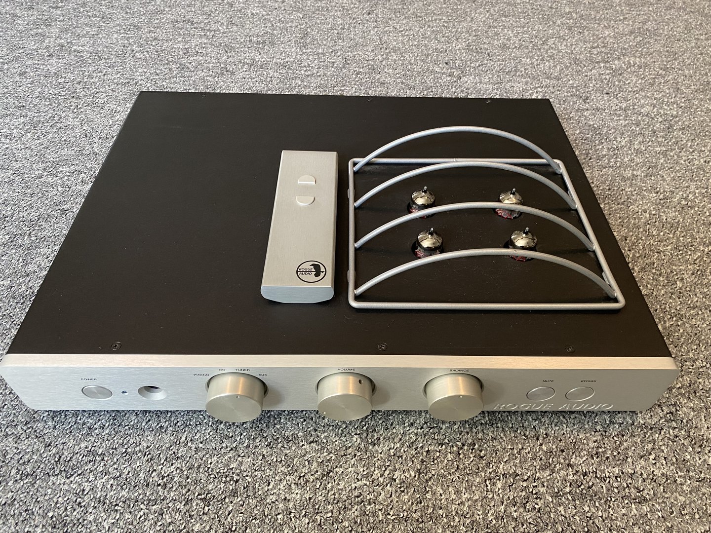 Denne har blitt stående uvirksom etter siste utskiftingsrunde og burde fått et nytt hjem. Jeg skal ikke begi meg ut på noen voldsomme beskrivelser, da de som kjenner Rogue nok vet hva den står for. Den står med JJ 12AU7, men har også et sett RCA NOS og litt EH som kan følge med. RIAA-trinnet er justerbart og henger med et godt stykke lenger enn forventet. Den har i lang tid levert glimrende lyd i mitt oppsett, og har etterhvert noen år på baken. Rørene var nye for halvannet år siden.