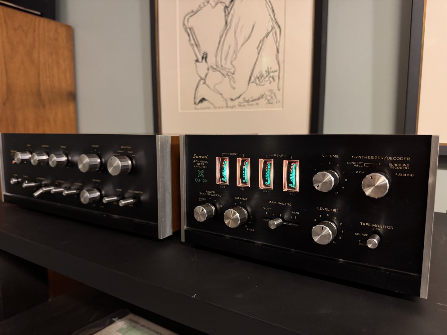 Selger en flott kombinasjon av Sansui AU-555A integrert forsterker og Sansui QS-100 quad decoder. Begge enhetene er i god teknisk og kosmetisk stand og leverer ekte vintage lyd med sjel og varme.
