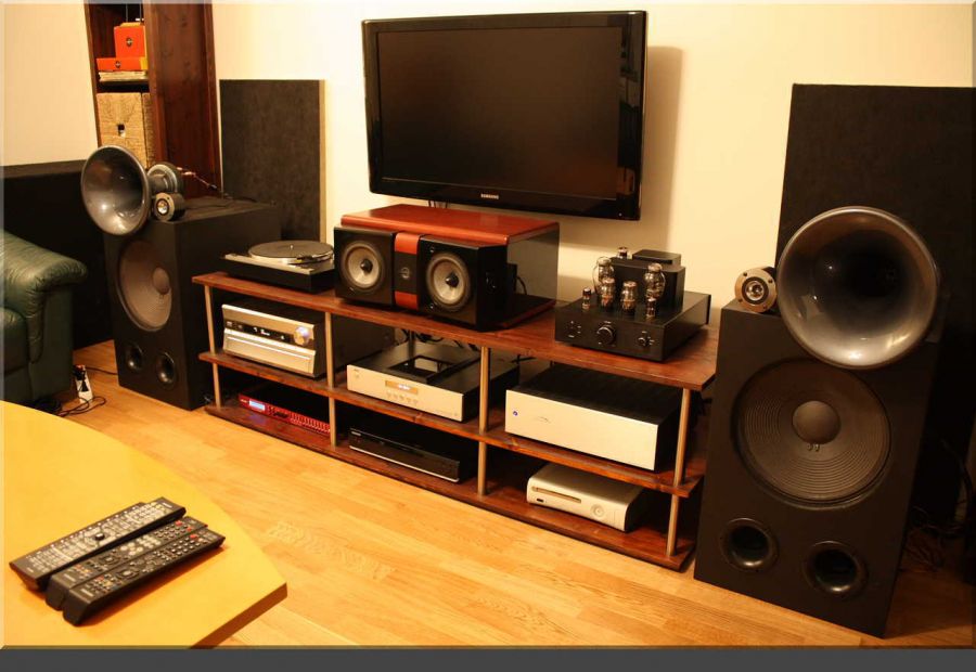 Stort spesiallaget stereorack selges. 180 x 50,5 x 51 cm (B X D x H). Består innvendig av tre høye og tre lave rom. De tre lave har innvendig høyde 18,5 cm, mens de høye har høyde 26 cm. Alle rom har innvendig bredde på 57 cm.