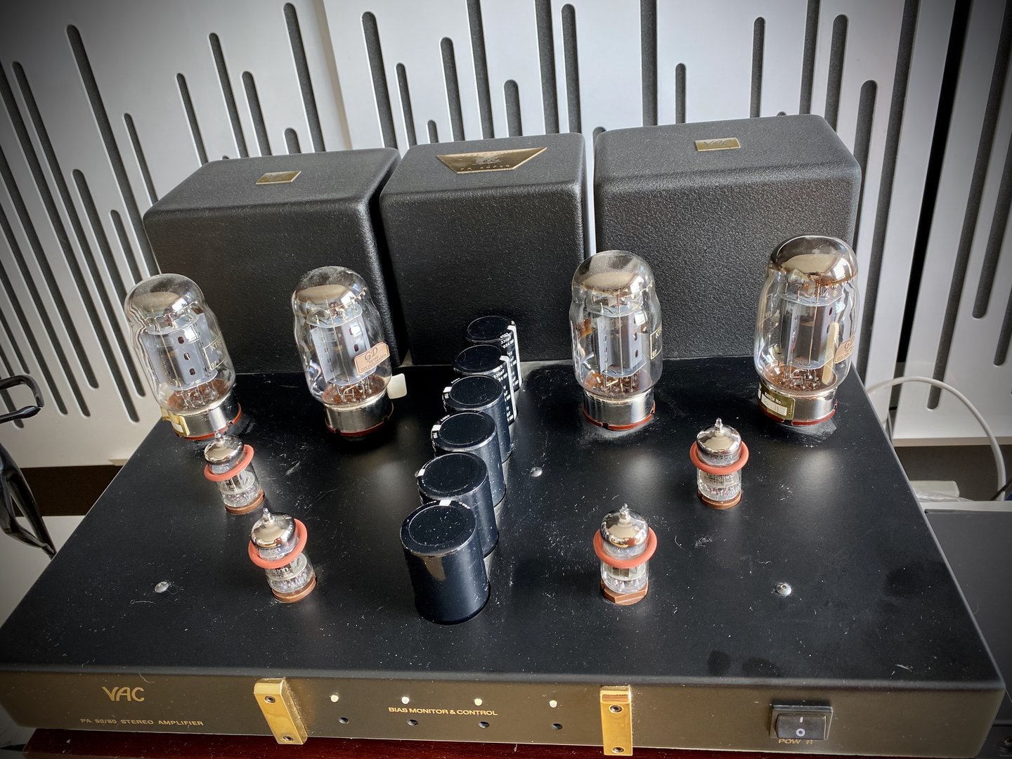 80 kraftige watt fra 4 KT88 rør. (Her kan flere rørtyper brukes).