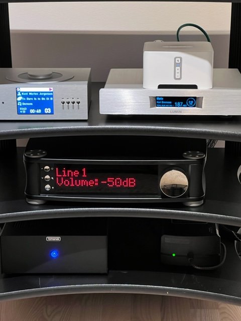 Noe jeg "savner" da? Tja, si det. Ikke direkte linket til komponentene i racket. Men hadde ikke sagt nei takk til et lytterom på 2-3-4 ganger størrelsen jeg har til disp. Tror gjerne jeg ville fått mer ut av oppsettet da. Men livet er nå engang som livet er, og då lyt ein gjera det beste ut av det man har til disp. Ikke sikkert en annen bedre halvdel hadde sett med like blide øyne på galskapen man driver med. Alternativet hadde gjerne ellers vært en manglende bedre halvdel, og det er jo ikke sikkert at tilværelsen ville vært den samme da - selv om det ville kunnet gitt enda friere hifi-tøyler......