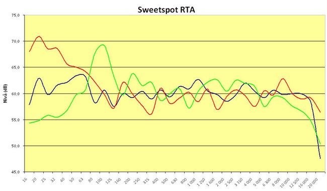 Da har nok ikke du sett stort, er jeg redd for. Frekvensresponsen oppover ser vanligvis ut som ryggen på et pinnsvin med tette pigger og dype huller. Eneste måte å unngå det på er å glatte kurvene etter måling, eksempelvis ved å beregne gjennomsnitt i tredjedelsoktaver.
