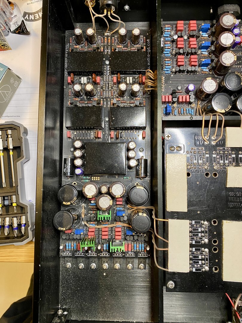 En ting med Master 7 er disse røde Wima kondensatorene som brukes. De liker jeg ikke etter at jeg recappet en forsterker med disse, det ble grått og kjedelig, så aldri mer de.