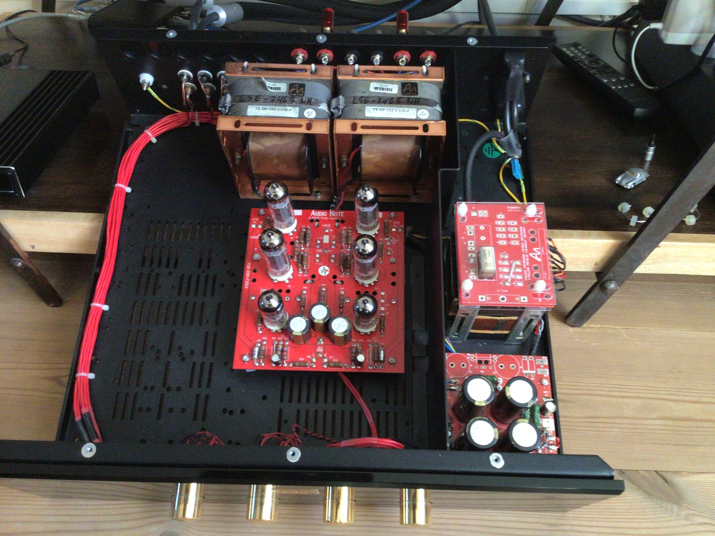 Etter litt diskusjon fram og tilbake mellom AN, ASR, Stereofil og meg: nå er den koblet opp balansert mot ASR Basis Excl HV Riaa (som kan omkonfigureres til fullbalansert drift for MC-pickups). Det gir for øvrig +6dB mer output (differensialen blir 0.08mV framfor 0.04 ubalansert). Ingen behov for trafo her... +62dB gain = 127mV RMS ut fra Riaa holder i massevis i mitt oppsett. Tror kanskje jeg skal dempe det til +56dB for optimal gainmatching med amp + høyttalerne.