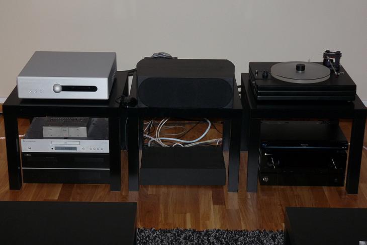 Virgo 2, Arcam p700, Linux-maskin som kjører xbmc på gulvet.