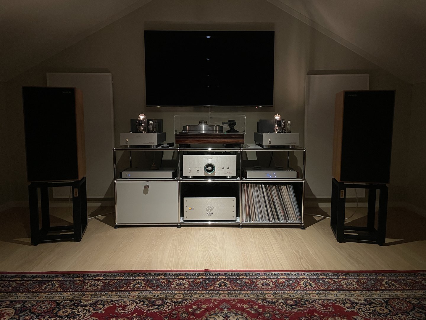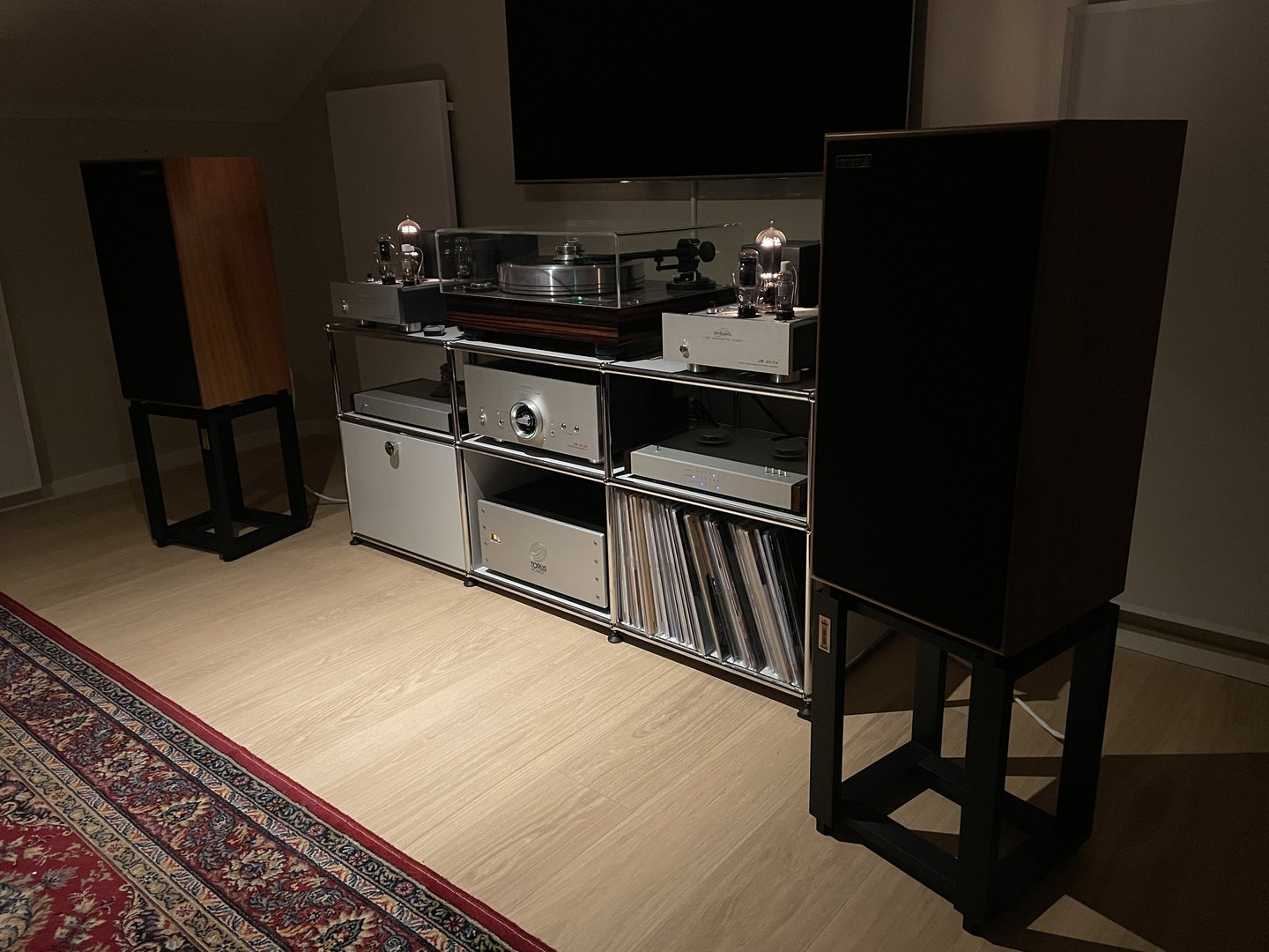 Jeg følger min egen innledende oppfordring om å legge inn en oppdatering ved endringer i anlegget. Derfor; nye Harbeth høyttalere, nye bilder! Har brukt den siste uken til å forske på plassering, men i dag er det fredag så i kveld blir første ordentlige runde med chill og jazz (og selvsagt øl).