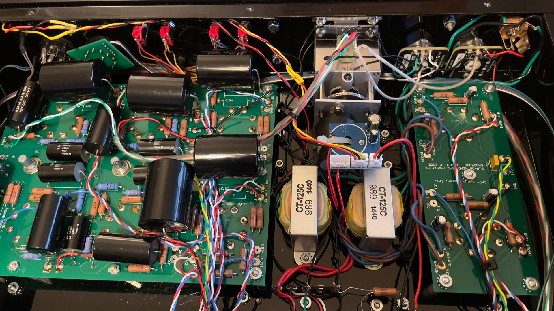 Har SLP98 (m phono inngang) + 2xSLAM 100 monoblokk, DMC 600 og EAR RIAA (koblet til tuner inngang). Enkelte ganger støyer det veldig (brusing i mangel av et bedre ord) i en eller begge høyttalerne. Skjer etter oppvarming og kan skje under avspilling, spesielt fra DMC der jeg bruker USB inngang fra Pro-ject Ultra S2 stream Box for lokal strømming fra NAS, kablet på datanettverket i huset. Mest hørbart her iom digital avspilling (FLAC+, opptil DSD256)