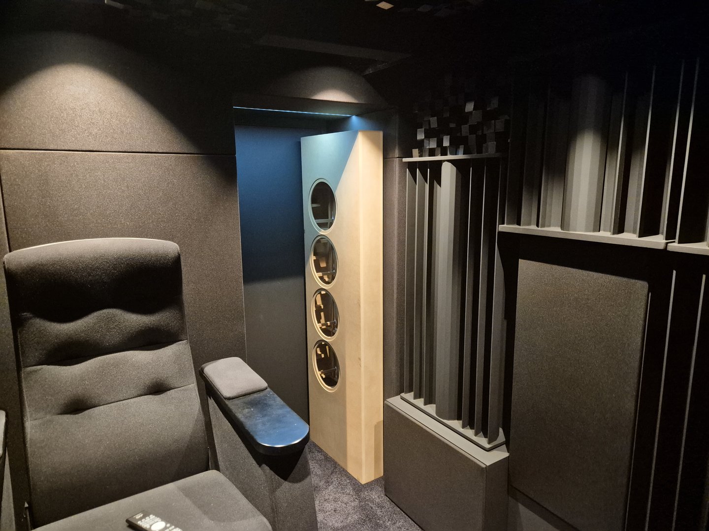 Sidevegger der man sitter har stort sett fått "svanå" diy diffusorer og de øker rom bredden vesentlig, og gir en liten mer "live" lyd. Vet egentlig ikke hvordan jeg skal forklare det. De heter vel egentlig ikke diffusorer heller, men blir kalt noe annet som jeg ikke husker.