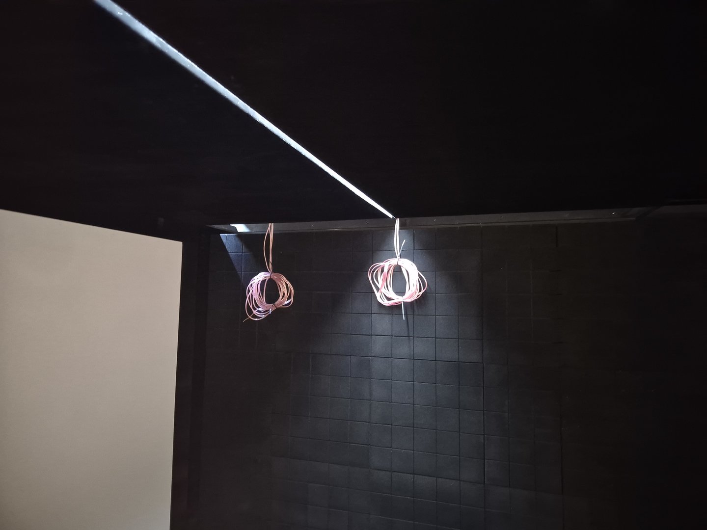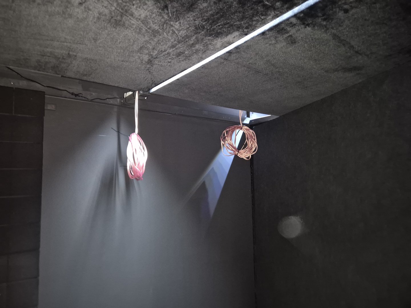 Taket over sitteplasser består av viacustic skyline diffusorer som er av gjennomfarget styrofoam. Disse er de jeg føler har høyest kvalitet av disse forskellige "isopor" diffosorene jeg har vært borti. Øker takhøyden vesentlig i rommet.