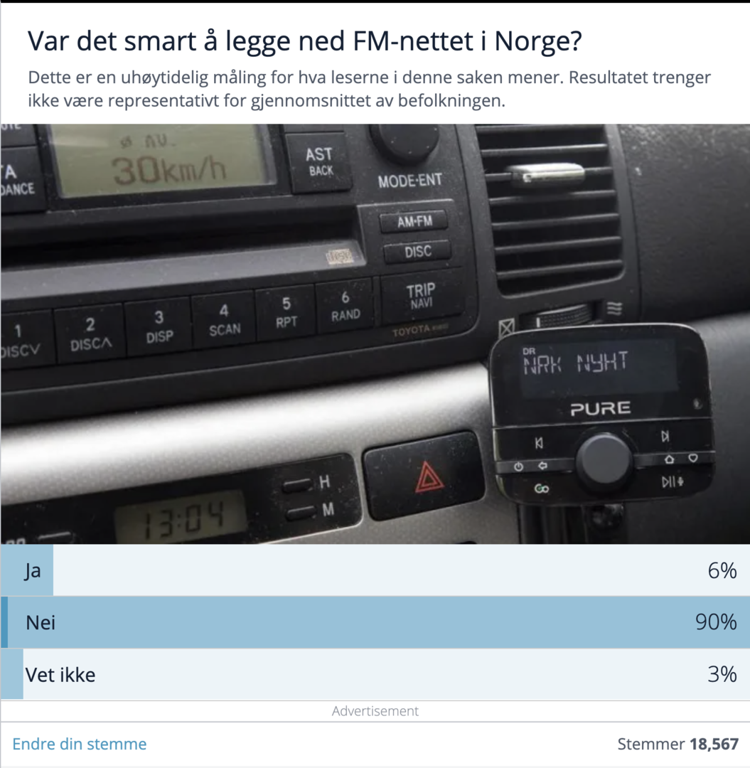 • Danmark, som i 2017 så ut til å følge Norge og ville slukke sitt FM-nett, ombestemte seg i fjor. De vil nå videreføre FM.