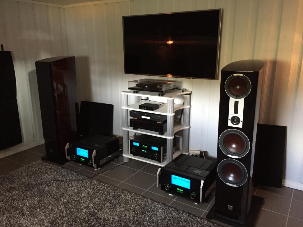 Lytterommet mitt er et rom i kjelleren, ikke så veldig stort ca. 15-20kvm så jeg føler egentlig rommet er litt i minste laget for de relativt store høyttalerne. Men jeg føler jeg har gjort det beste ut av det med diverse dempeplater osv. Jeg har planer om og bygge ut et nytt lytterom i nærmeste fremtid hvor jeg satser på og få utnyttet det fulle potensialet i høyttalerne. Jeg har hatt diverse høyttalere oppigjennom (mindre dali modeller, klipsch sonus faber olympica), men kanskje ikke byttet så mye som mange andre her inne. Har vært mye på messa i munchen og lyttet mye der nede og på de forskjellige hifi sjappene i Østfold og Oslo området for og gjøre meg opp inntrykk. Etter hva mine ører erfarer så tenker jeg at jeg må veldig mye opp i pris iforhold til epicon for og få noe som er "bedre". Jeg er ikke så veldig opptatt av teknikken og merker, men har hele tiden brukt ørene og gjort mine kjøp basert på hva jeg liker. Har hatt og testet diverse forsterkere på mine epicon (electrocompaniet nad master serien, passlabs, bat er noen av dem), men mcintosh er den desidert beste matchen jeg har hatt på de og har aldri sett meg tilbake etter at de kom i hus. Har hatt mye forskjellig fra mcintosh også, men jo større de har blitt jo bedre låter det. Epicon trenger forsterkere med mye strømreserver. Jeg er av typen som nyter det jeg har, men en ny dac står kanskje som neste på innkjøpslisten (vurderer og teste hegel hd30). Legger ved et bilde av det under her. Har endret litt plassering siden bilde ble tatt og bluray spilleren er byttet ut med en oppo udp 205.abbath: Ser du har Epicon 8 og et veldig bra anlegg foran dem. Kan du si litt om lytterommet ditt og hvordan du opplever 8-erne i forhold til andre høyttalere som du sikkert har hatt før disse? Synes det er interessant å lese litt om 'veien fram' til dagens oppsett hos erfarne fjellfolk