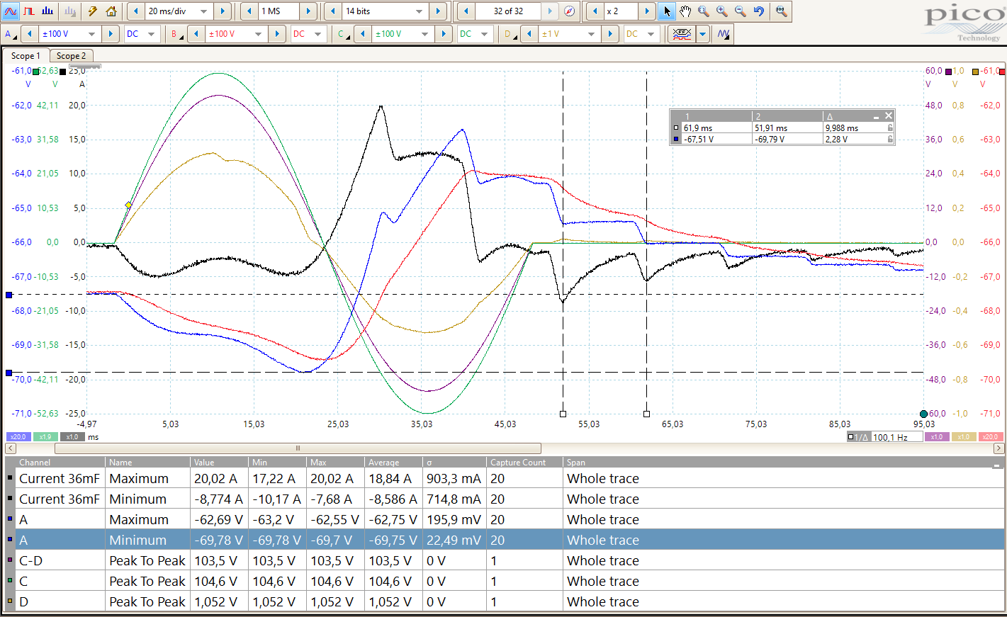 Har endelig fått kloa i nytt scop som kan måle 4 kanaler samtidig med 14-bits presisjon og det er utrolig hva man kan måle med slikt utstyr.