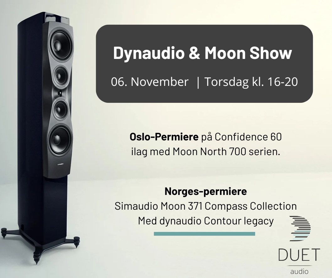 Nå på Torsdag så kliner vi til med et skikkelig high end show på Dynaudio's toppmodell Confidence 60, ilag med Simaudio Moon 791 (preamp) og 761 (effektforsterker)