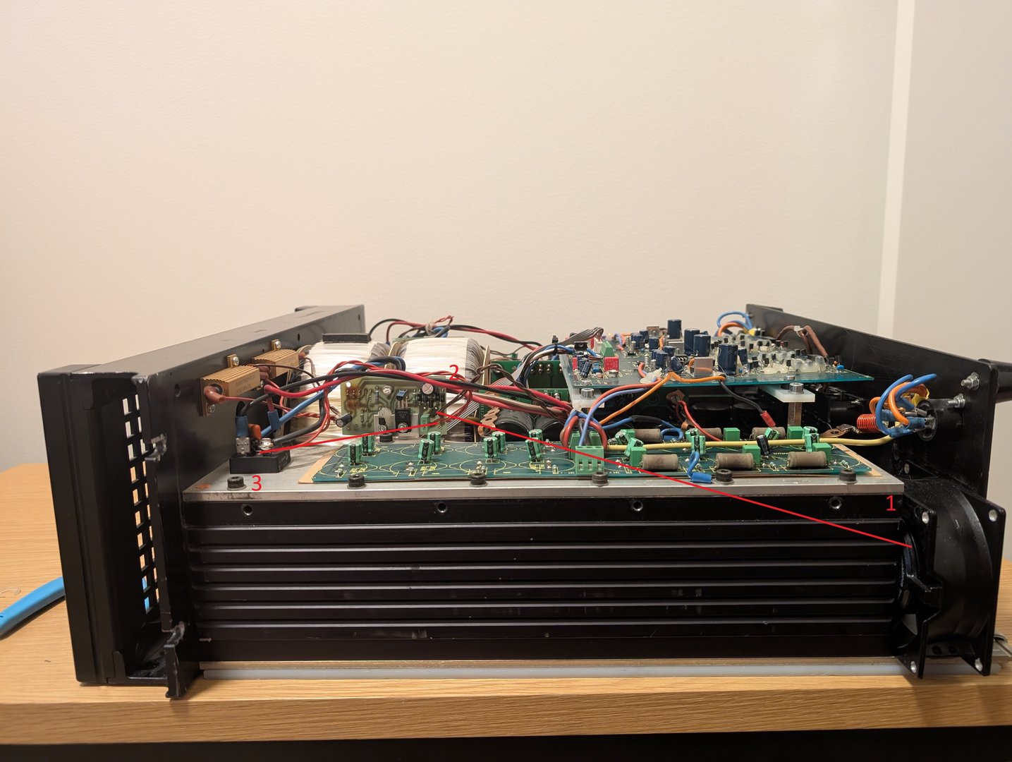 Forsterkeren kommer med en grill for beskyttelse av vifte. Fjernet denne og resultatet ble merkbart bedre.