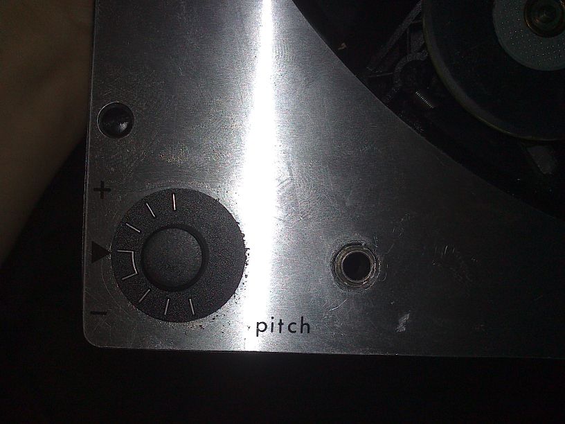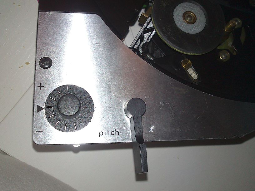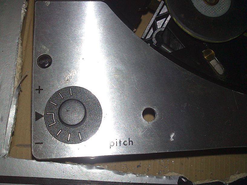 Skal ordne med 33-45 bryter ved pitch-kontrollen, og se om det finner plass til en strømbryter der også.