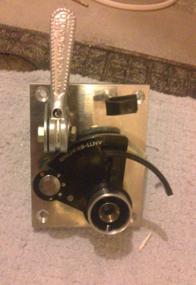 Har satt tonearmen på armbordet, og fått min hjemmelagede armløfter-mekanisme på plass.