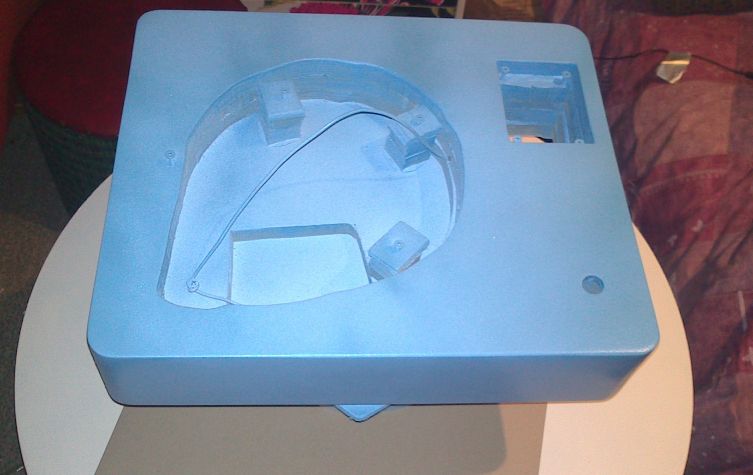 Fikk av\på-knapp i posten og satt den nedi for å sjekke hvordan det ble. Hev så platespilleren nedi og armbord med tonearm.:cool: