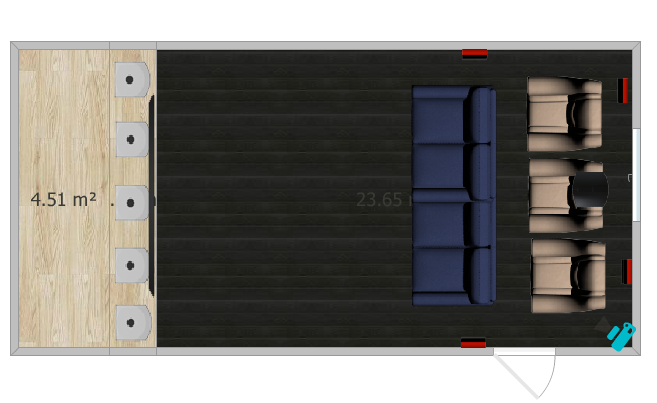 Bakre rom tenkes som teknisk rom, og vil nok få en smal dør bak lerret om det lar seg gjøre.