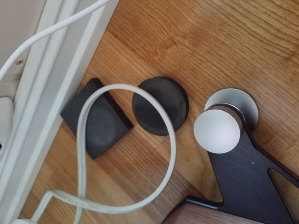 Bare vent til jeg henter frem de kombinerte kabel og platespillerstøttene. Preciion made by me. Lett Strontium indusert for å effektivt jage vekk strøfelt.....