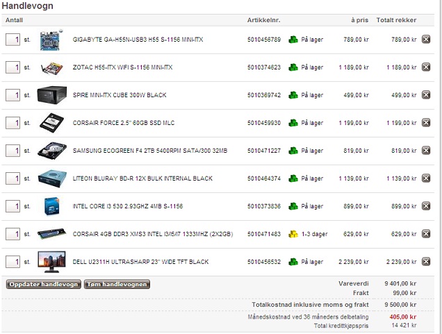 Ok, da har du jo en del tilgjengelig. Jeg har introleranse mot norsk OS (og ekstremt sterkt utviklet allergi mot norsk Excel), men det er jo en smakssak. Bare noe å tenke over, siden medfølgende OS ofte er norsk om du egentlig vil ha engelsk.