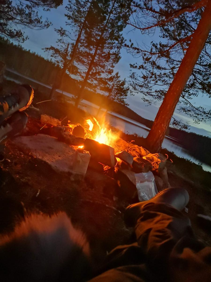 Rakk akkurat å få i gang bålet før sola gikk ned.
