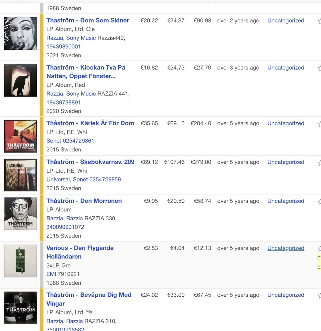 Hvilke har du?Rart at den ikke har kommet på vinyl. Hadde den på CD, men røk med da jeg solgte CD-samlingen for mange år siden. Har heldigvis seks Thåstrøm plater i hyllene, og de står veeeldig langt vekke fra salgsbunkene![]()