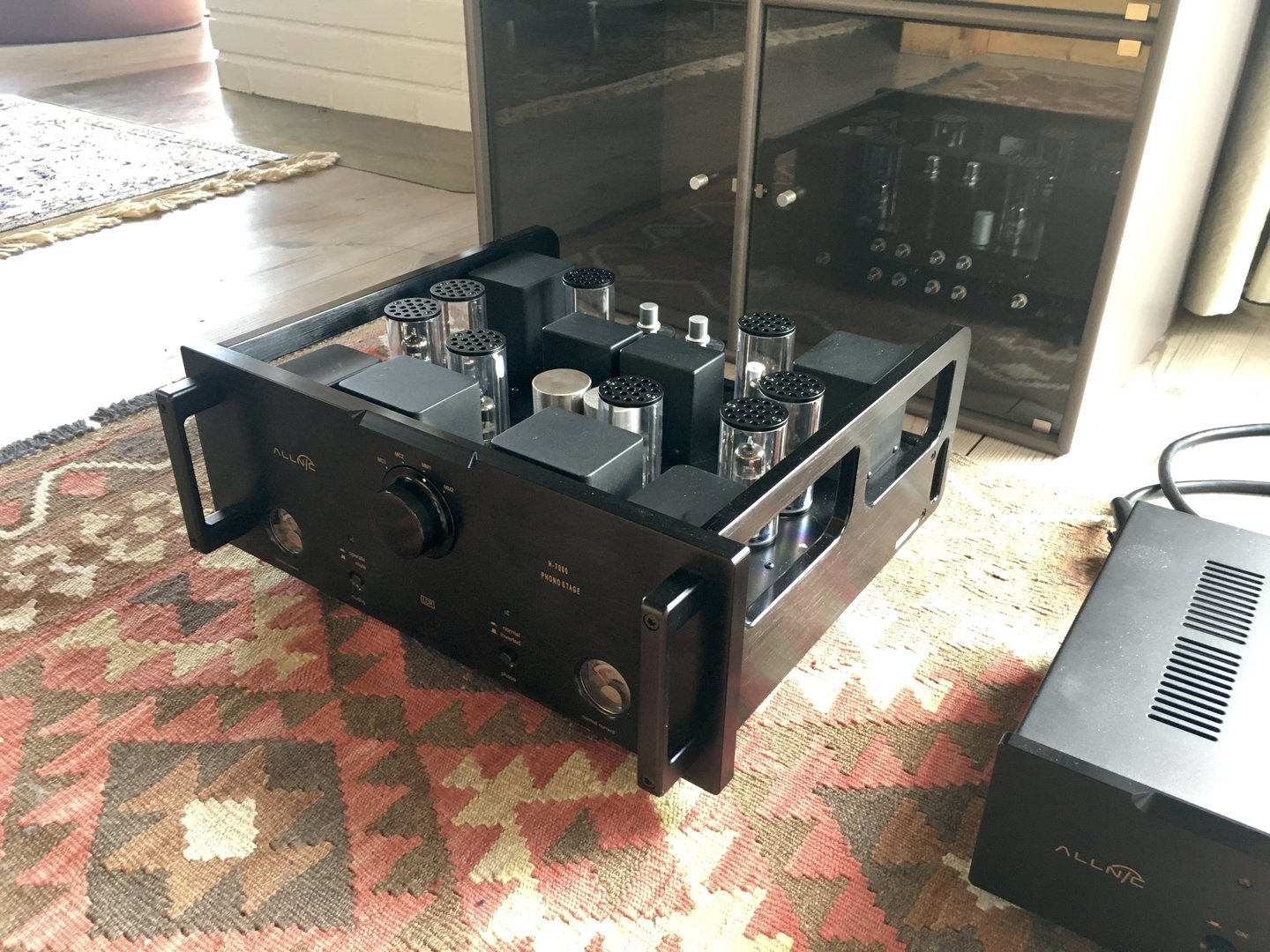 Dynavector-trafoen er tenkt mellom XV-1S og Allnic (mitt eksemplar mangler stepup). Diverse aktiviteter har resultert i at jeg ikke har kommet lenger med å koble opp Allnic. Har kjøpt nye kabler også, men ikke fått hentet ennå. Så avtales salg av Accuphase A30 og A60, de forsvant ut i går, sammen med Allnic H-1500MKII Plus, og det blusser opp i ene røret på AudioValve. Nydelig! Alt tyder på at det er mer enn bare rørfeil (ikke lenge siden jeg skiftet ett i samme posisjon så jeg er ikke forundret).
