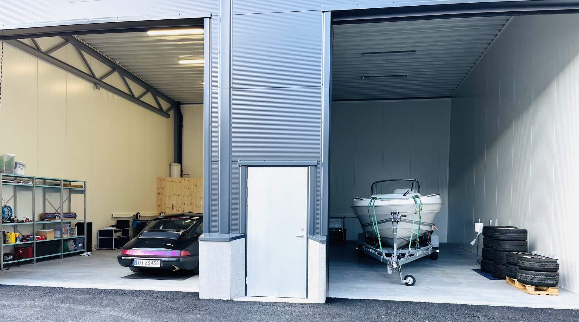 Har fått 911-en ut fra vinterlagring og inn i ny garasje. Båten like så. Når det roer seg litt på jobb så blir det noen kosedager med vask og puss.