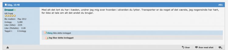 Ei heller å rakke ned på andre og spesielt når folk faktisk svarer og gir gode råd på konkrete spørsmål medlemmer stiller.