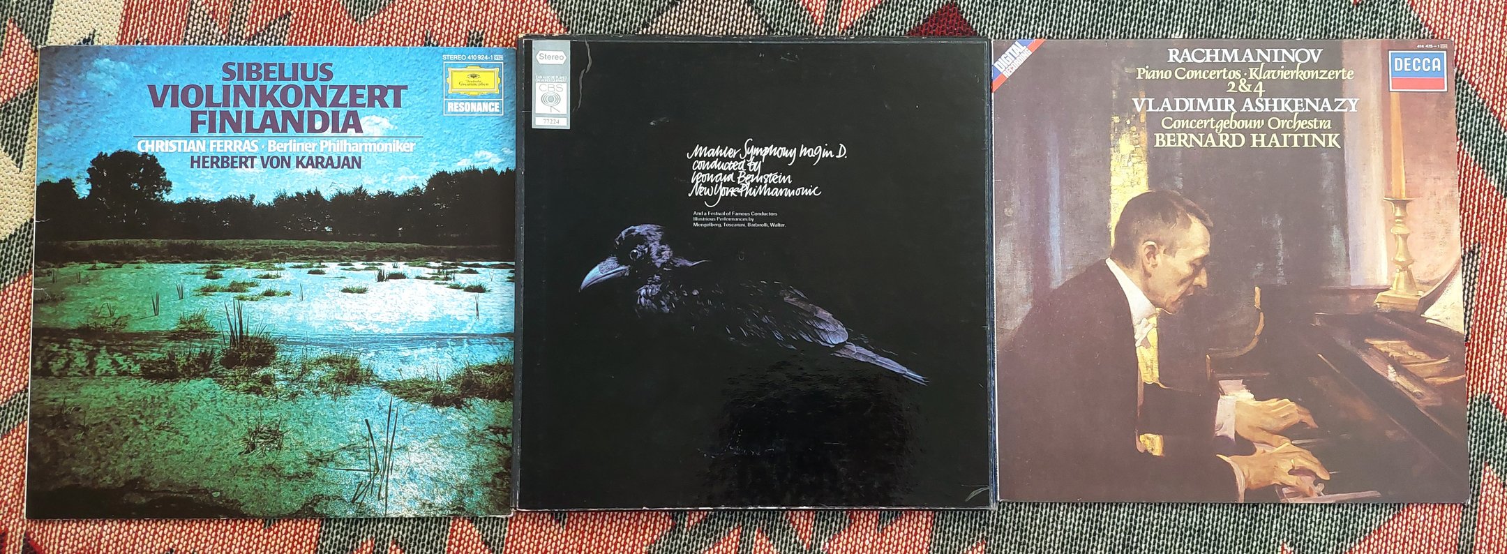 Messe på Hifi&Vinyl gjorde at jeg med god samvittighet kunne ta med meg disse hjem. Sibelius violinkonsert med Christian Ferras er min absolutte favoritt i denne konserten. Mahler 9 med Bernstein var en gledende surprise i hyllen. Og Ashkenazy Rach 4 hadde jeg faktisk ikke på LP.