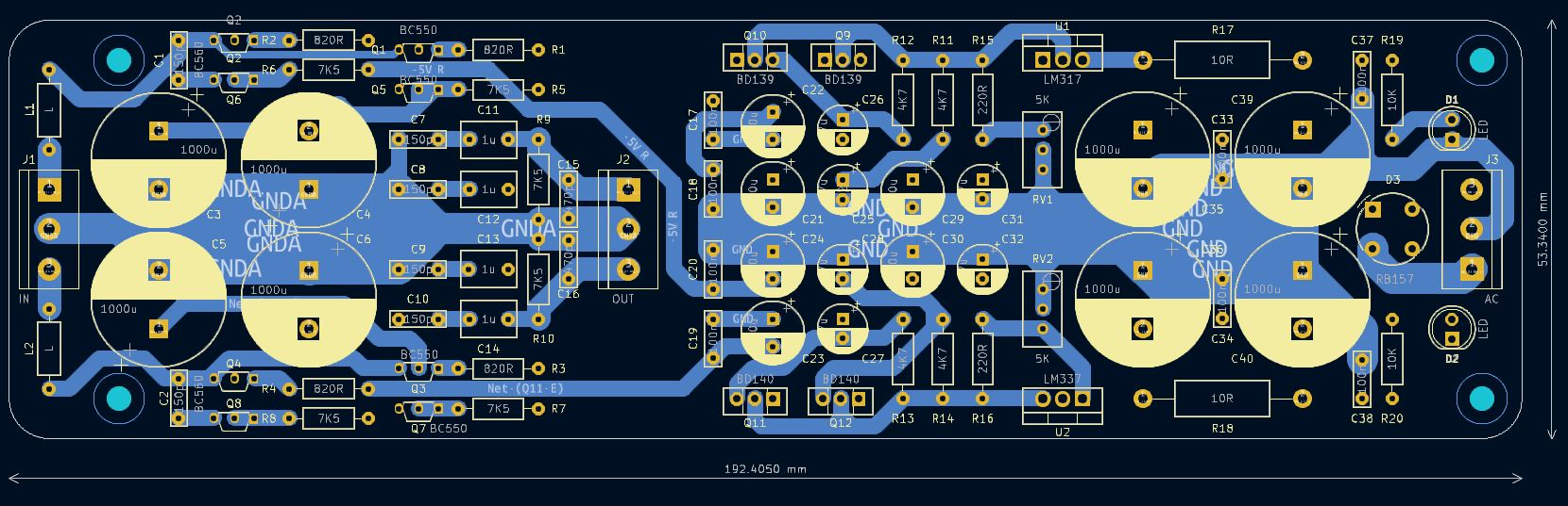 Har akkurat lagt ut et kort for en symmetrisk Hiraga'ish MC-preamp, med on-board PSU. Spørsmålet er jordingsregimet.
