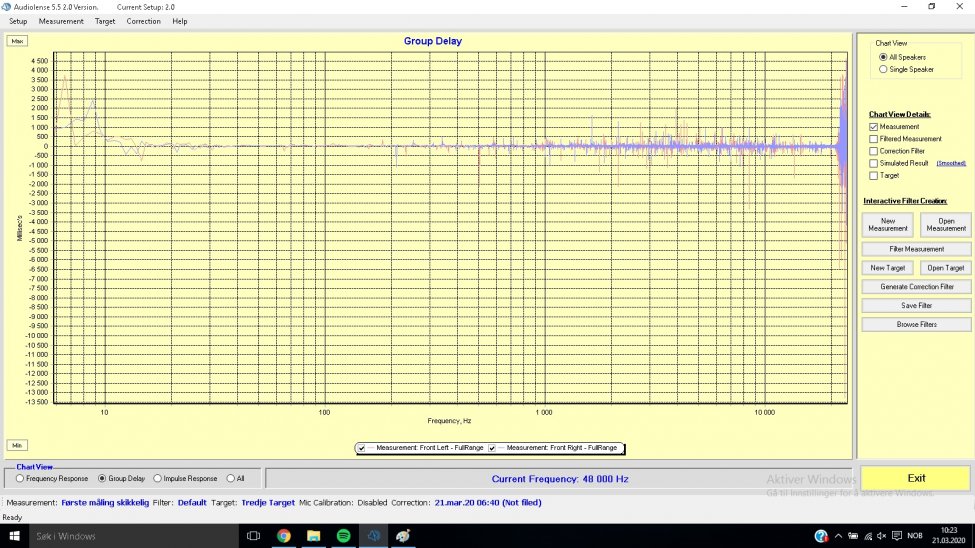 Du kan gjøre det ganske enkelt. Du bare henter opp målingen i Audiolense, genererer samme korreksjonen som du gjorde sist. NB du må klikke på simuleringen slik at du får ufiltrert simulering .... før du genererer korreksjonen. Så kan du eksportere en simulert impulsrespons under "analyser". Denne kan du så importere i REW og så er det bare å lage diagrammer. Eventuelt kan du sende målingen til meg så kan jeg leke litt og se hva som skjer ... og poste her.