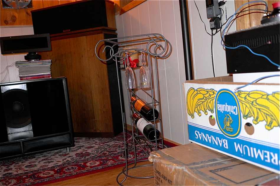 Jo, som noen kanskje legger merke til på ene bildet (av høyre horn) så ligger det ett par drivere der (oppe på bananesken). EV mellomtone drivere, Birger hadde med seg sine "gamle" mellomtonedrivere og de måtte selvsagt inn asap ;D