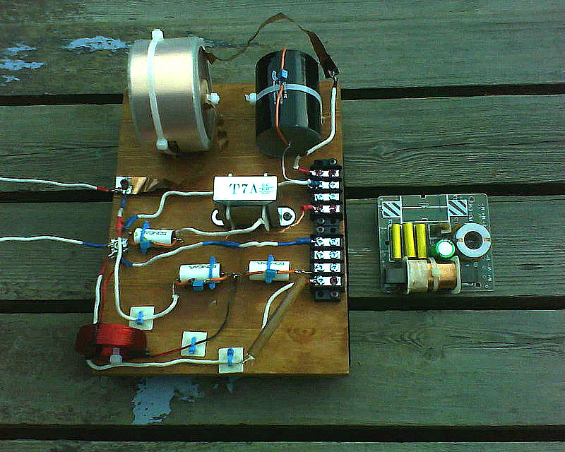 Kanskje like greit du tar med hele "bakplata" der filteret sitter i dag? Da kan vi lodde på ledningene fra det nye filteret og til terminalene med det samme.