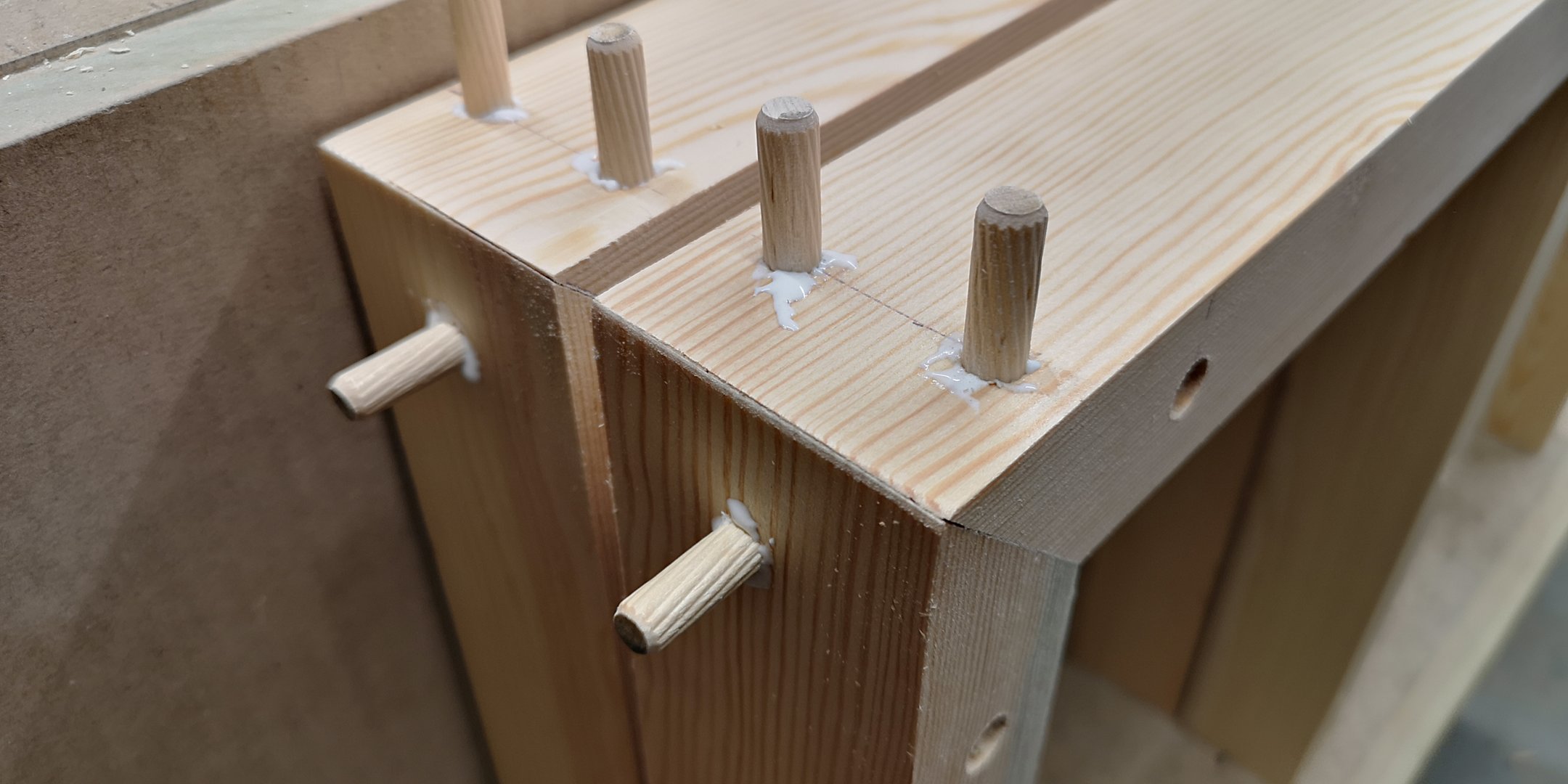 Plater til mid-kasse, og fot i kvistfri furu: