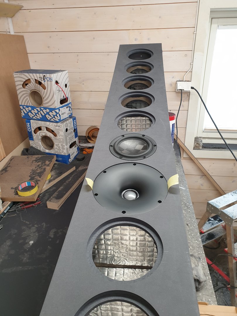 "Noe gærnt med huet ditt" - sa rektor på barneskolen til meg under en kontroll av sykler (vi er tilbake da jeg gikk i 5-klasse) - samme året jeg også begynte å få sansen for musikk med steelgitar. Greia var at jeg ikke hadde sykkelstyre men påmontert et originalt Volvo lastebilratt... OK, også hengerfeste på bagasjebrettet, med selvlaget semihenger med boggi hjulsett med fjæring, hentet fra ei Simo barnevogn.Du er selvsagt hjertelig velkommen innom for en DIY aften! Men jeg må ærlig si at jeg ville nok holdt meg til linjekildene, langt enklere (og rimeligere) å få verdensklasse lyd ut av enn hornoppsett. Har et meget slemt konsept ferdig tegnet her, får se hva neste år bringer. Linjekilder er meget fascinerende og noe av det jeg virkelig kan tenke meg å bygge/eie selv.