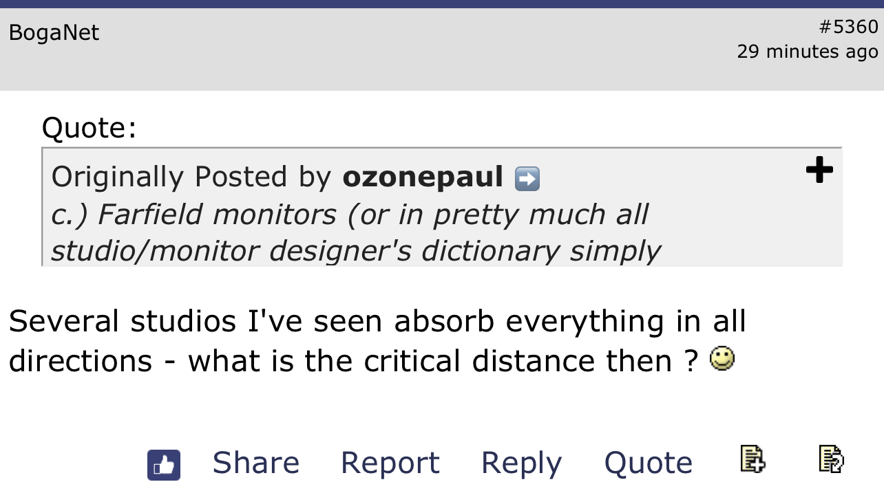 Så lenge man henviser til studioer som en generell benevnelse og legger til grunn at de representerer en slags benchmark for hva som ender på innspillingen har man egentlig avslørt at man ikke forstår prosessen med produksjon.Vedr. påstandene på HFS om at produksjonsrom ofte er å regne som stuer, akustisk sett. Det gjelder kanskje ikke som en regel?