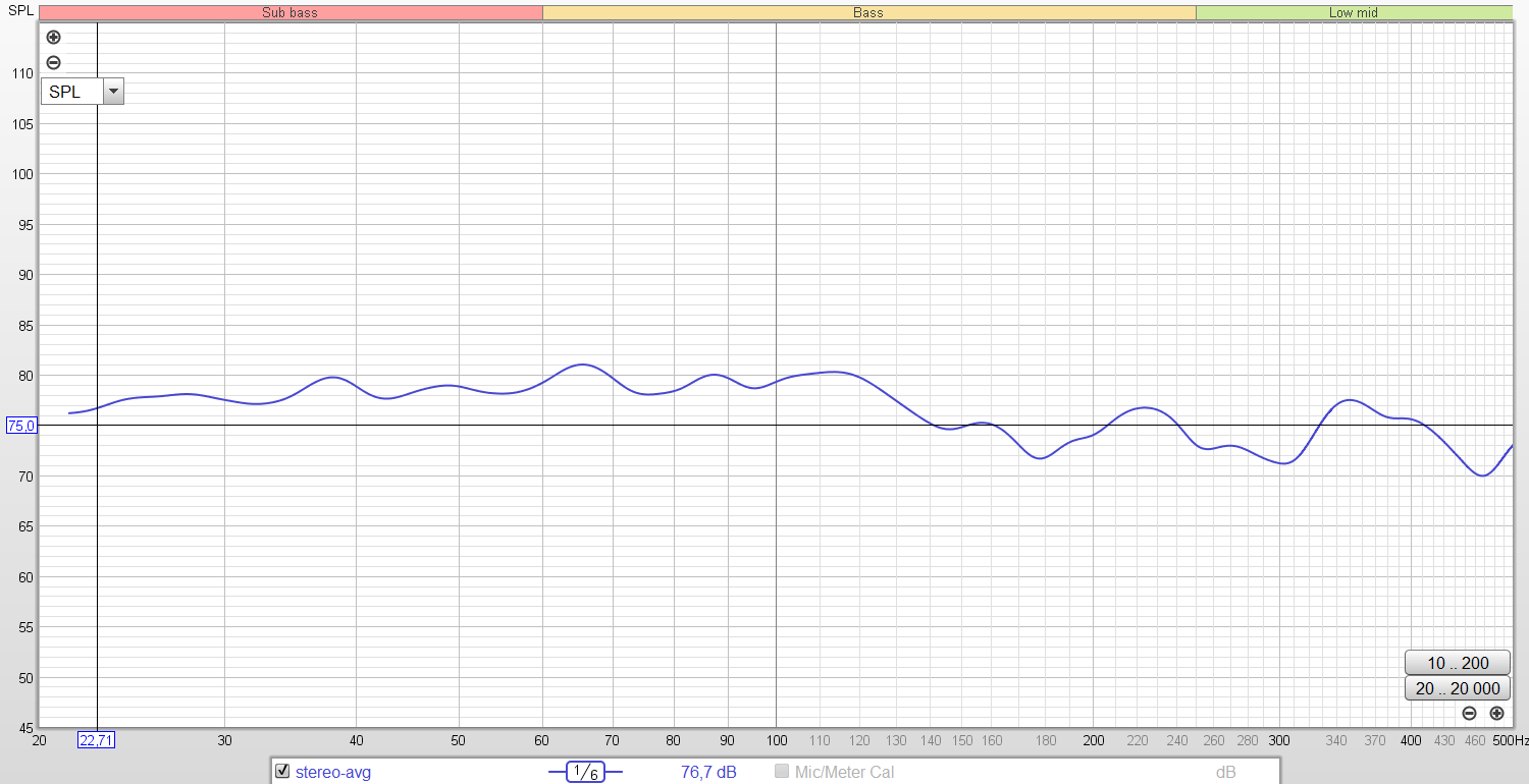 Her er 20-500hz fra fire forskjellige rom/høyttaler-kombinasjoner (ingen av rommene er de samme) jeg opplevde ikke nødvendigvis at alle låt helt likt, men de låt tonalt riktig. Jeg tar bevisst kun med 20-500hz for å vise hvor akademisk det blir å snakke om kun dette området uten å forstå resten av responsen (og ikke minst lytte). Alt er snitt av venstre/høyre kanal og enten 1/12 eller 1/6 smoothing.