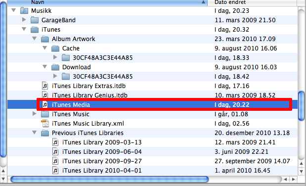 På Macmini ser det ut som alle låtene også ligger i en spilleliste som heter Music, dette er jo ikke noe problem egentlig siden det vel bare er en "peker"