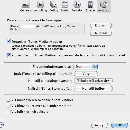 Kopier filer til iTunesmedia står på, men hva skal den over "organiser iTunes i Mediamappen være avkrysset eller ikke?
