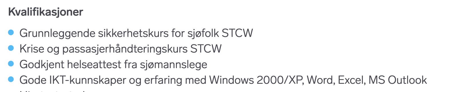Dritt, jeg kan best W95 og NT....IT kvalifikasjoner hos Hurtigruten.