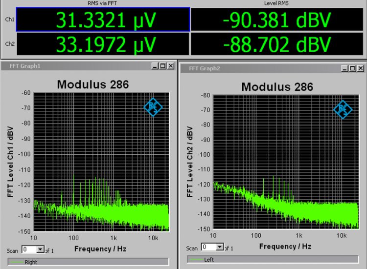 Jeg målte Neurochrome 286 bygget til Naturlig før jul. Han bruker en SMPS300RE som er montert rett over forsterkeren med en aluminiumsplate i mellom. Selv med PSU montert såpass nærme forsterkeren er ikke støy noe problem.
